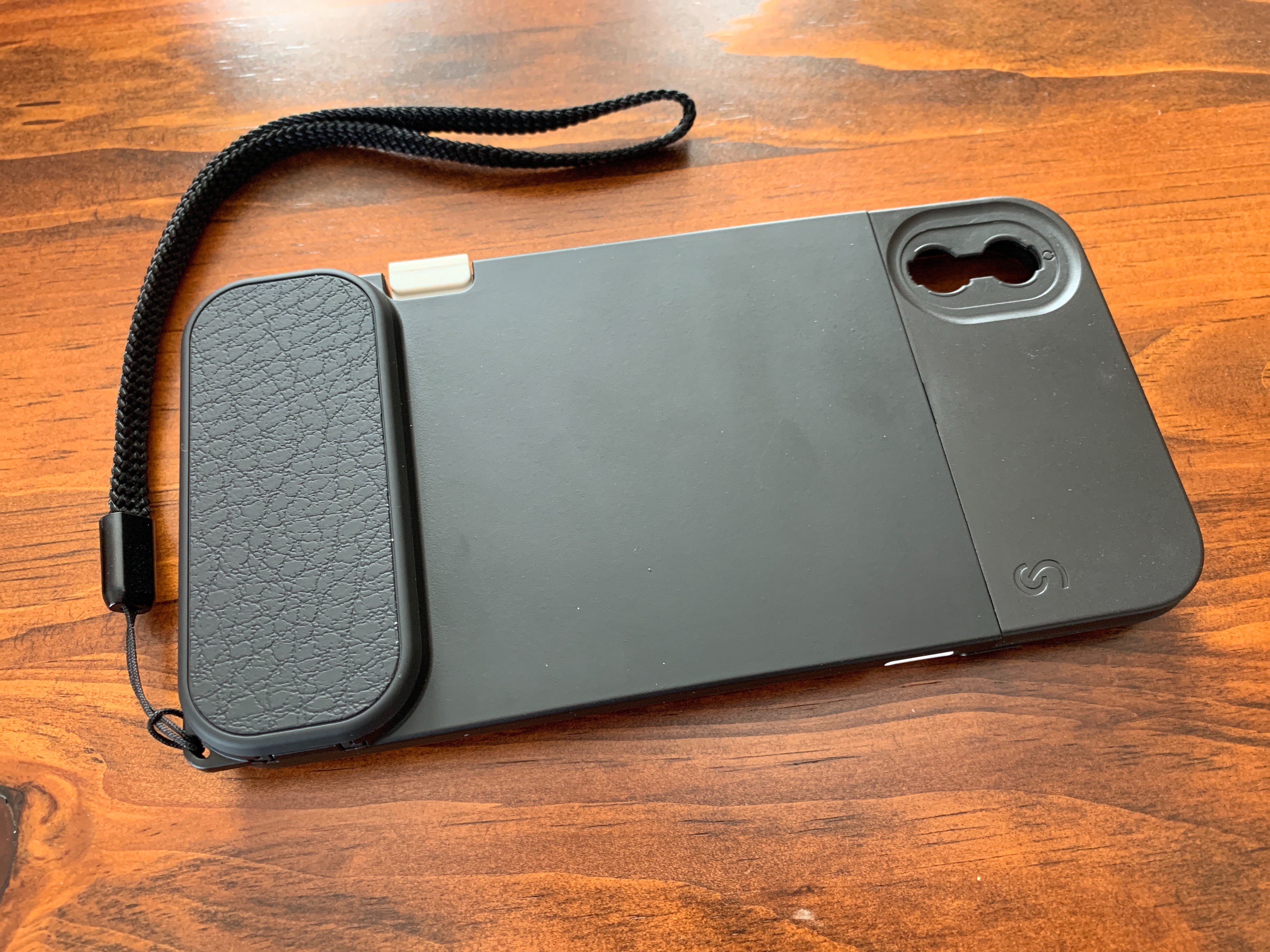 I like the new case with my XS Max and Moment lenses. I am not sure about the “click” you mentioned regarding the thumb rest. It is rubber and slides on via grooves. Mine has fallen off several times. Thought that is why there are 2 in the box in case one falls off and is lost. I also use Halide as my camera replacement app in addition to Moment’s app for lens selection. There are times the Moment app will not respond to the case’s shutter release and use the on-screen button instead to not miss the shot. Other than the two nuances, I really like this case.