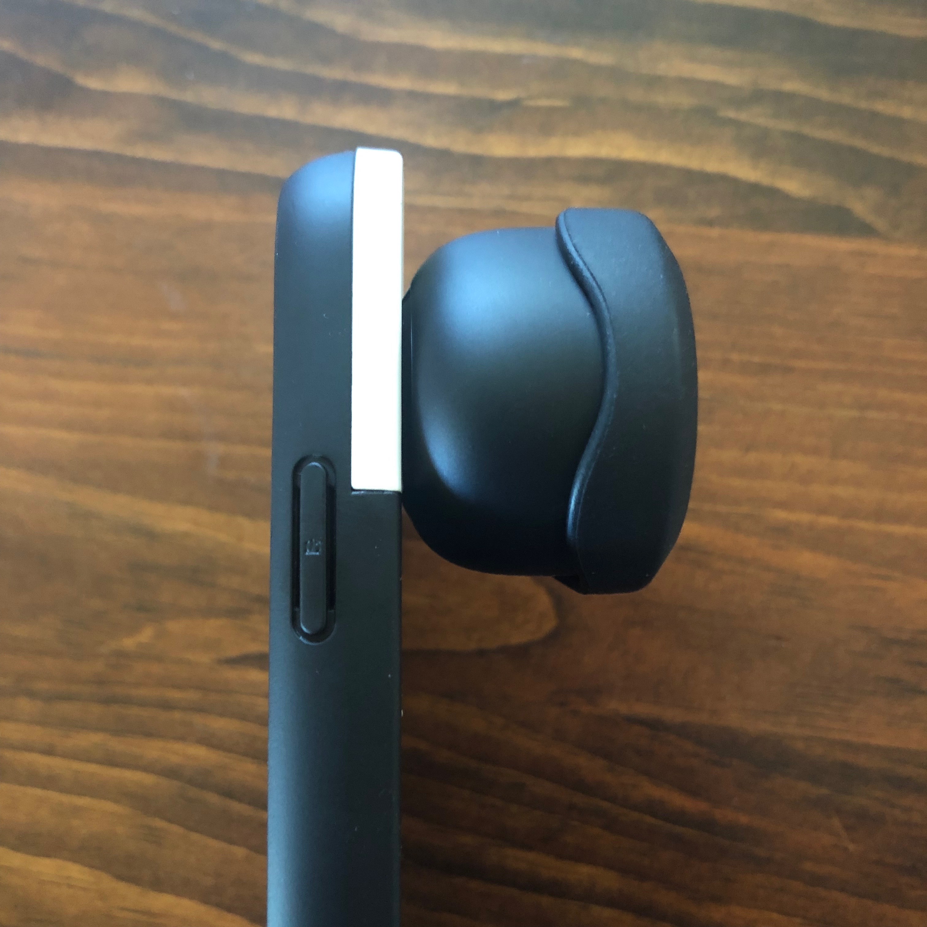 Once the phone is snapped into the case, there’s a small groove on the side of the body where the thumb button slides into place. It also goes into place with a slight click. The thumb button is there to make holding the phone ergonomically correct, but it juts out over the screen by about 2 mm. However, I haven’t found it to be in the way of anything yet.