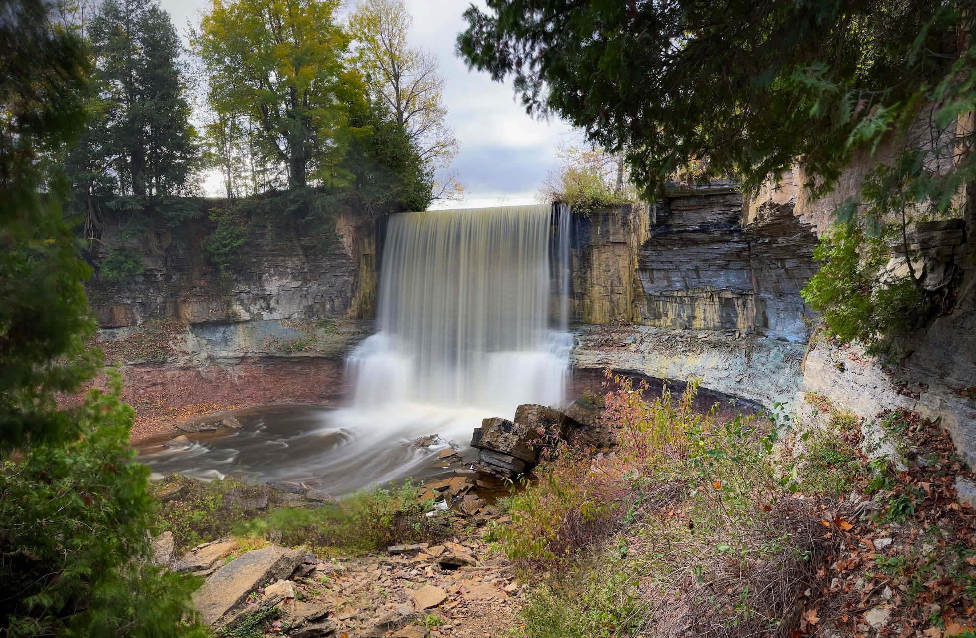 In the fall of 2021, I accompanied some friends on a short hike to a local waterfall, Indian Falls. It was late in the season so the colourful foliage was all but finished showing off their wonderful hues of red, orange and gold, but there were enough leaves left on the trees and a lush carpet on the ground to make it a worth while effort.